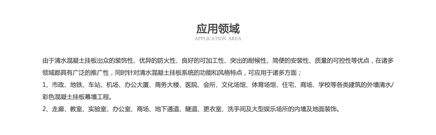 清水混凝土预制挂板(PC)采用天然原料,括水泥、精选石英砂、河砂、石子、天然矿物质颜料等,经过配比搅拌而成
